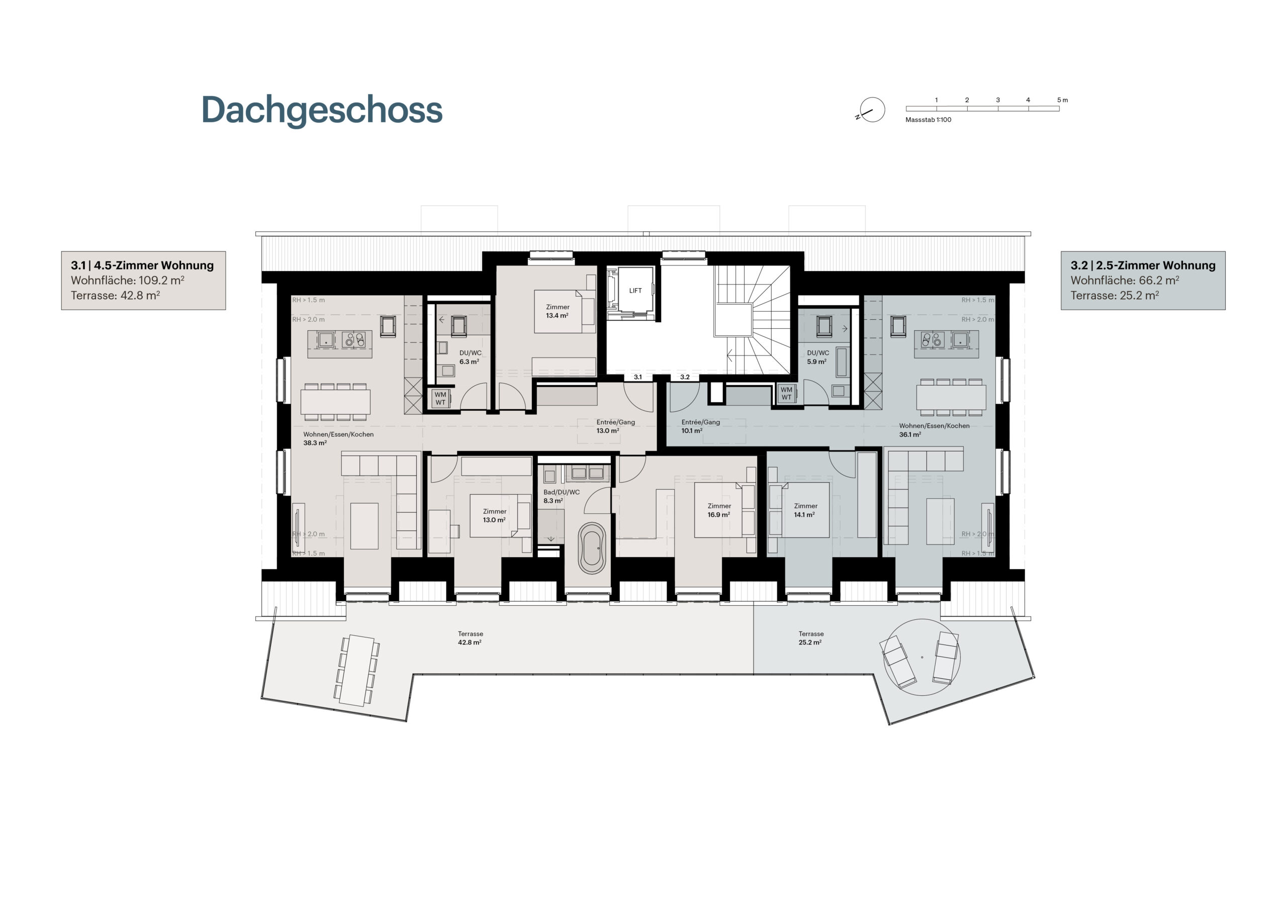 | DG | 3.1 | 4.5-Zimmer Dachwohnung | 109.2 m² | 42.8 m² | Verkauft | PDF öffnen | |