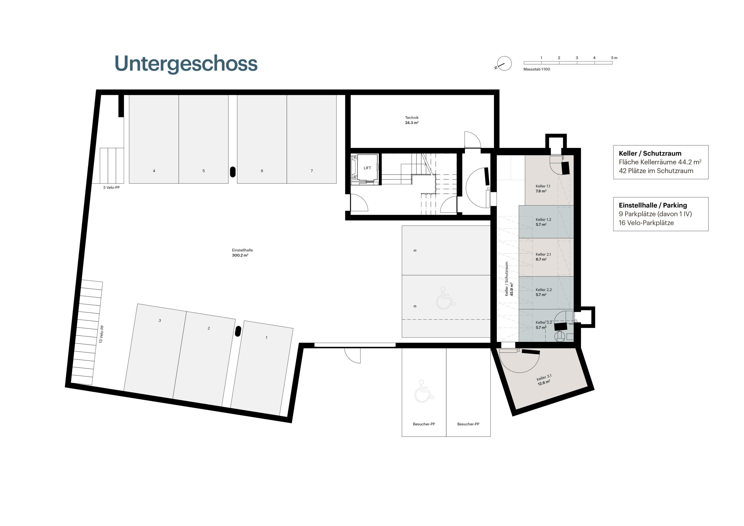 | UG | PP | 9 Tiefgaragen-Parkplätze à | 35‘000.– | PDF öffnen |